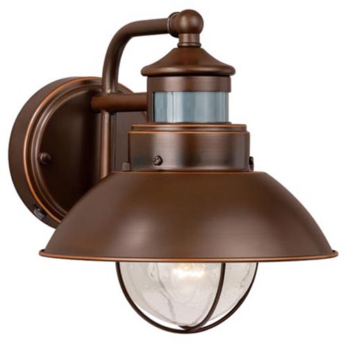 Burnished bronze and clear seeded glass by Vaxcel Lighting.