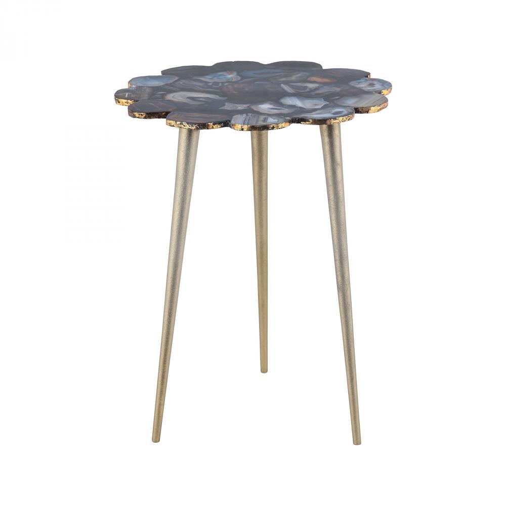A gold and black knossos side table made of agate and aluminum