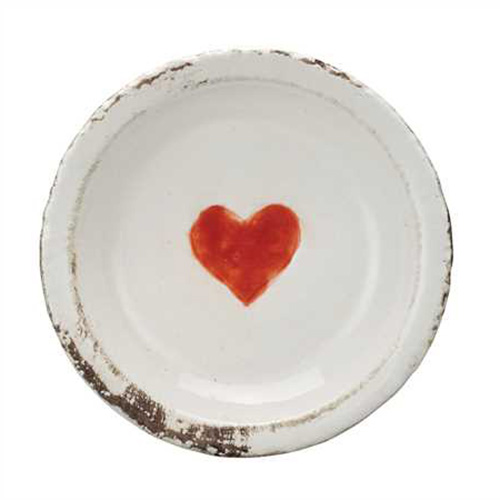 Decorative terra cotta plate w/ heart and distressed finish by Creative Co-Op.